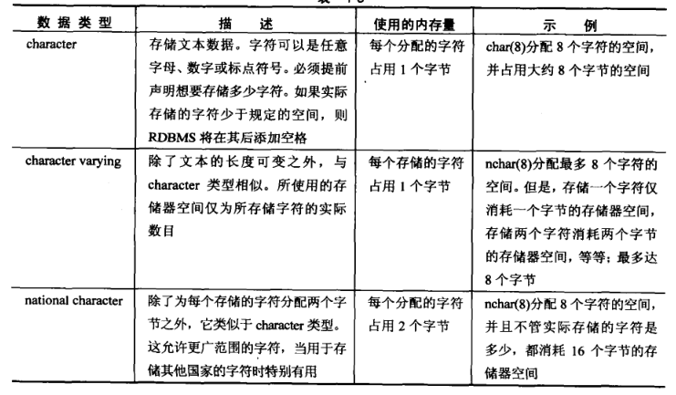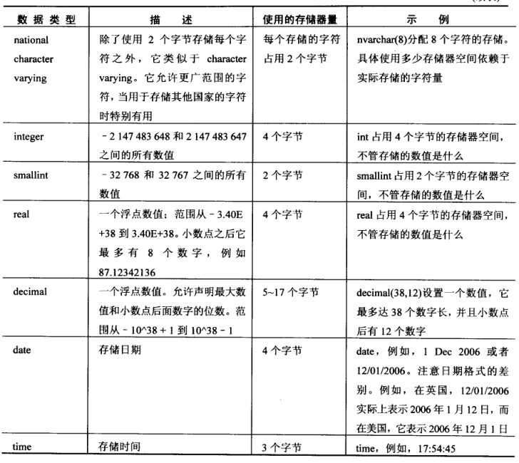 nchar和nvarchar(使用两个字节存储一个字符),使用的是Unicode的存储器。