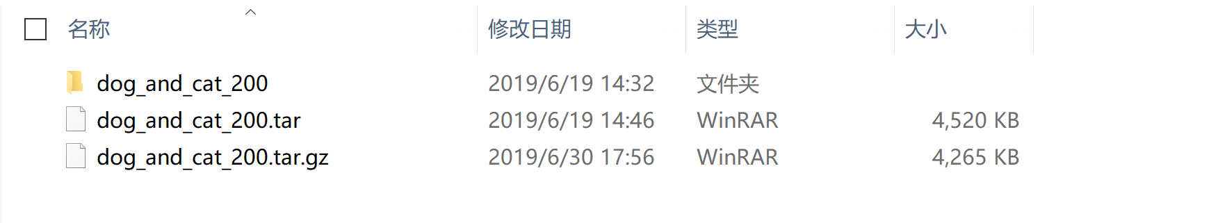 此数据集包含猫和狗的图片各100张,名称为dog_and_cat_200,即经过7ZIP的两次提取,获得文件夹,打开里面会有200张图片