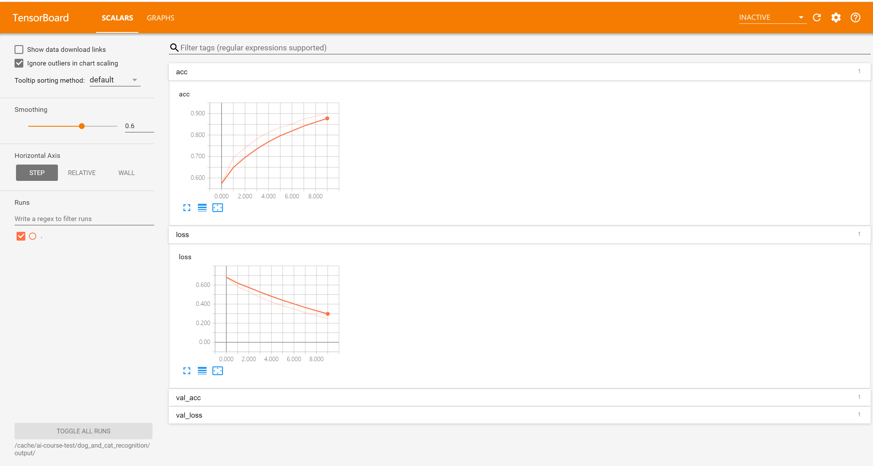 当状态处于“运行中”时, 点击TensorBoard名称,进入TensorBoard,可以看到TensorBoard界面,如下所示: