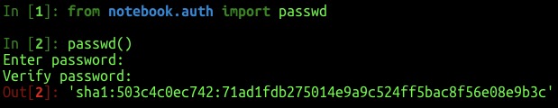c.NotebookApp.ip='*' # 就是设置所有ip皆可访问 c.NotebookApp.password = u'sha:ce...刚才复制的那个密文' c.NotebookApp.open_browser = False # 禁止自动打开浏览器 c.NotebookApp.port =8899 #随便指定一个端口