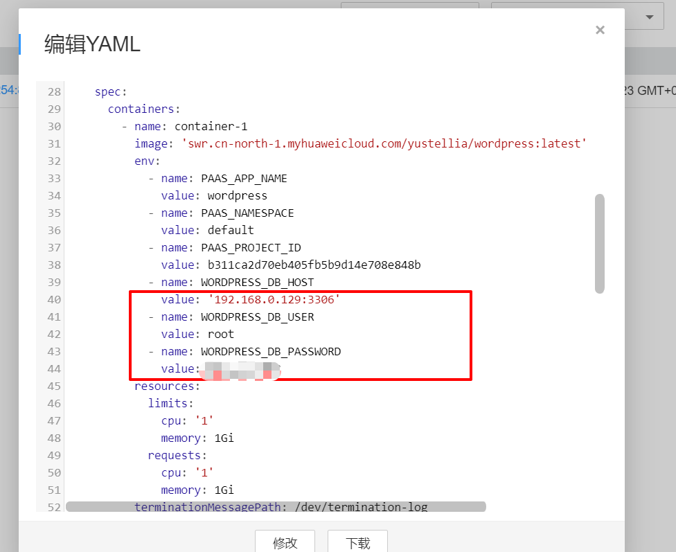 WORDPRESS_DB_PASSWORD:数据库管理员密码(从数据库实例中获取)