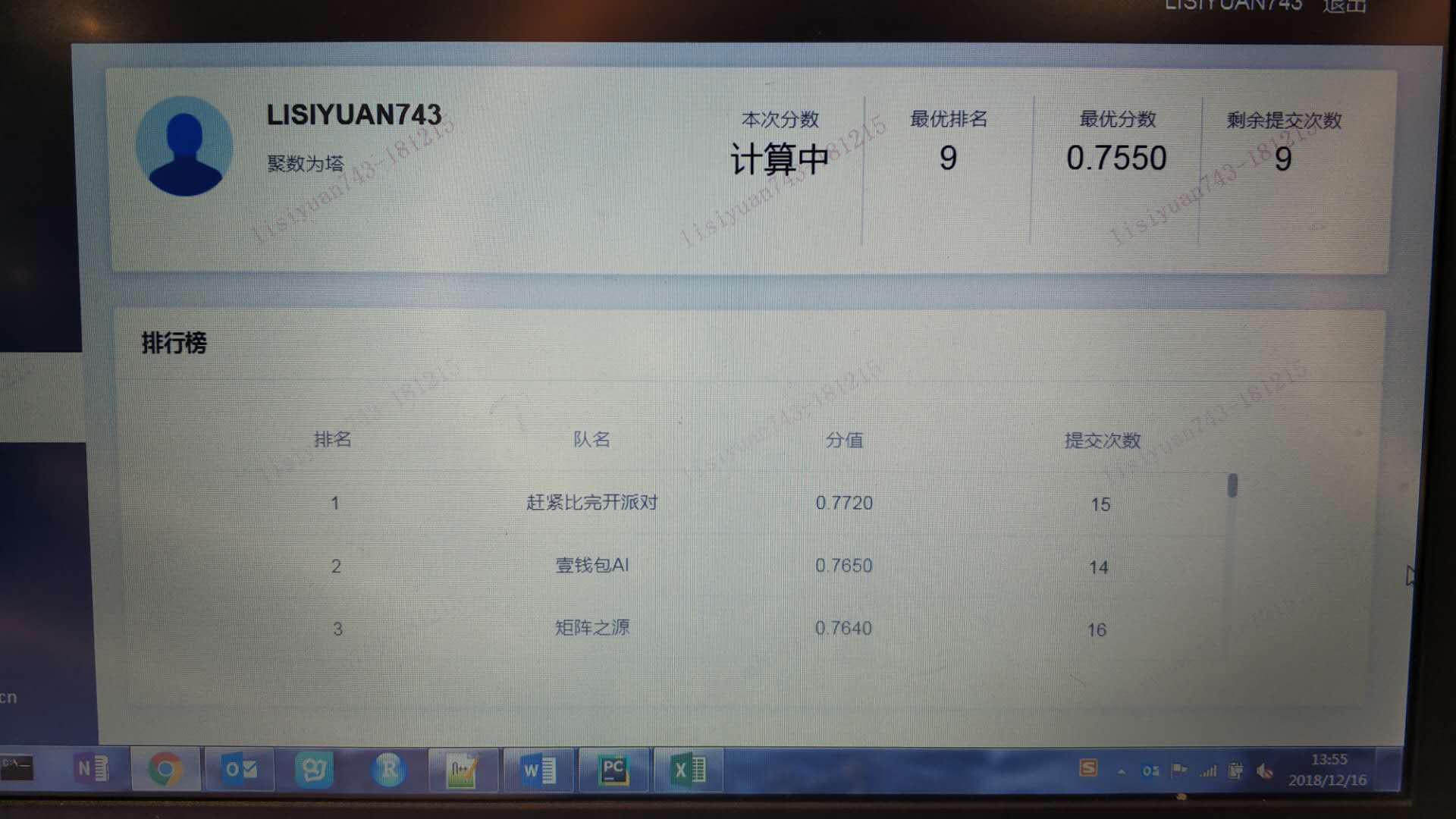 此次比赛最后得到的结果是第9名,由于没有拿到奖金,这个结果我不是很满意,人力上的吃亏有较大的影响。但比赛结束后,前三名的队伍分享了经验,我对他们的方法也表示非常赞赏,认为自己和他们在数据的理解,以及模型知识上确实存在较大的差距。