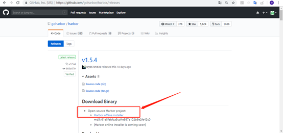 https://github.com/goharbor/harbor/releases 到github官网下载offline离线包,上传到所需安装的机器上!