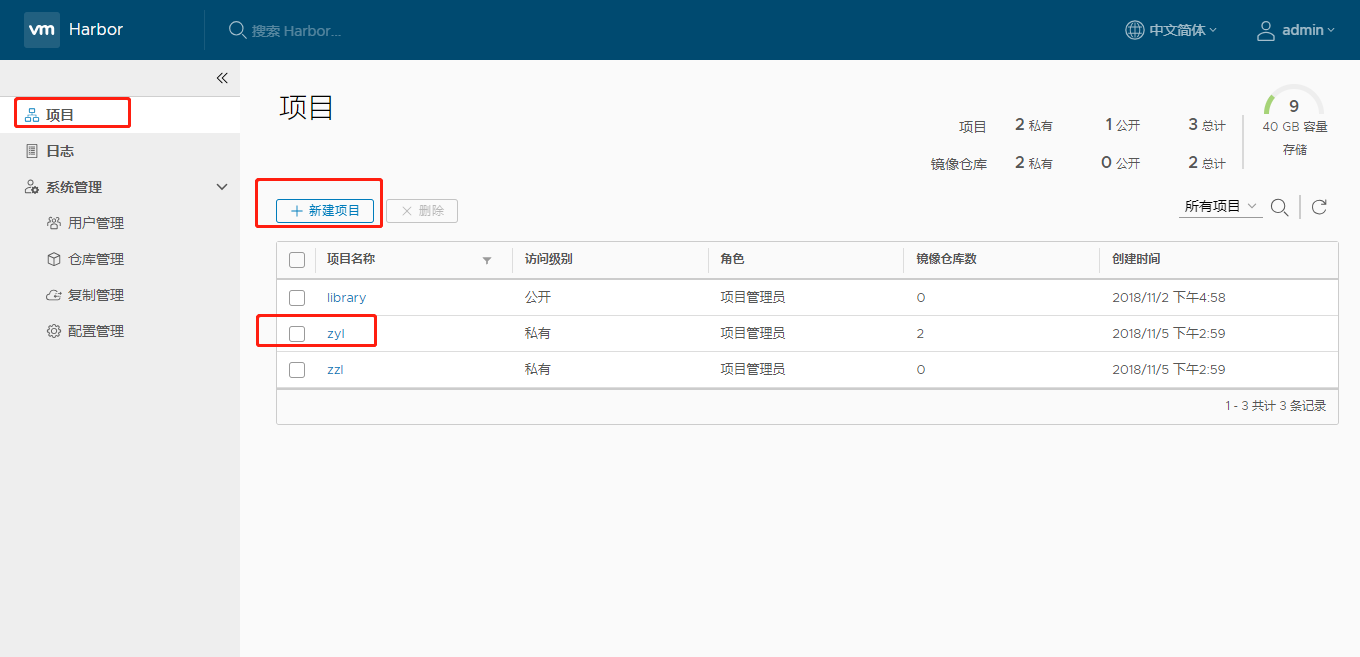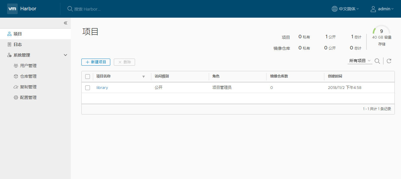 使用刚才的harbor.cfg配置文件里面的用户名和密码登陆UI界面,登陆成功