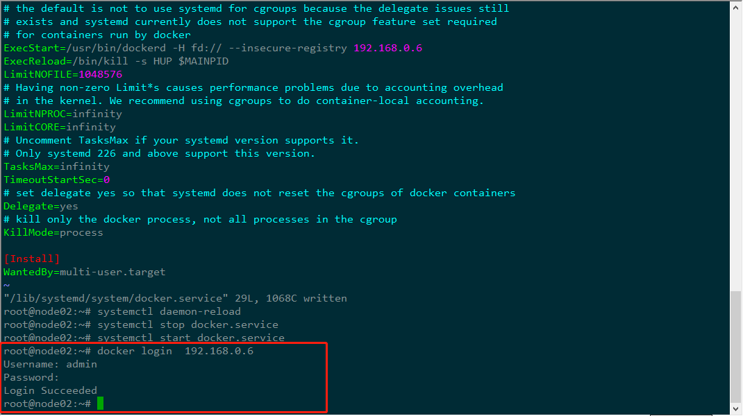 A:在需要登陆的docker client端修改lib/systemd/system/docker.service文件,在里面修改ExecStart那一行,增加--insecure-registry=192.168.0.6,然后重启docker (systemctl daemon-reload systemctl restart docker)
