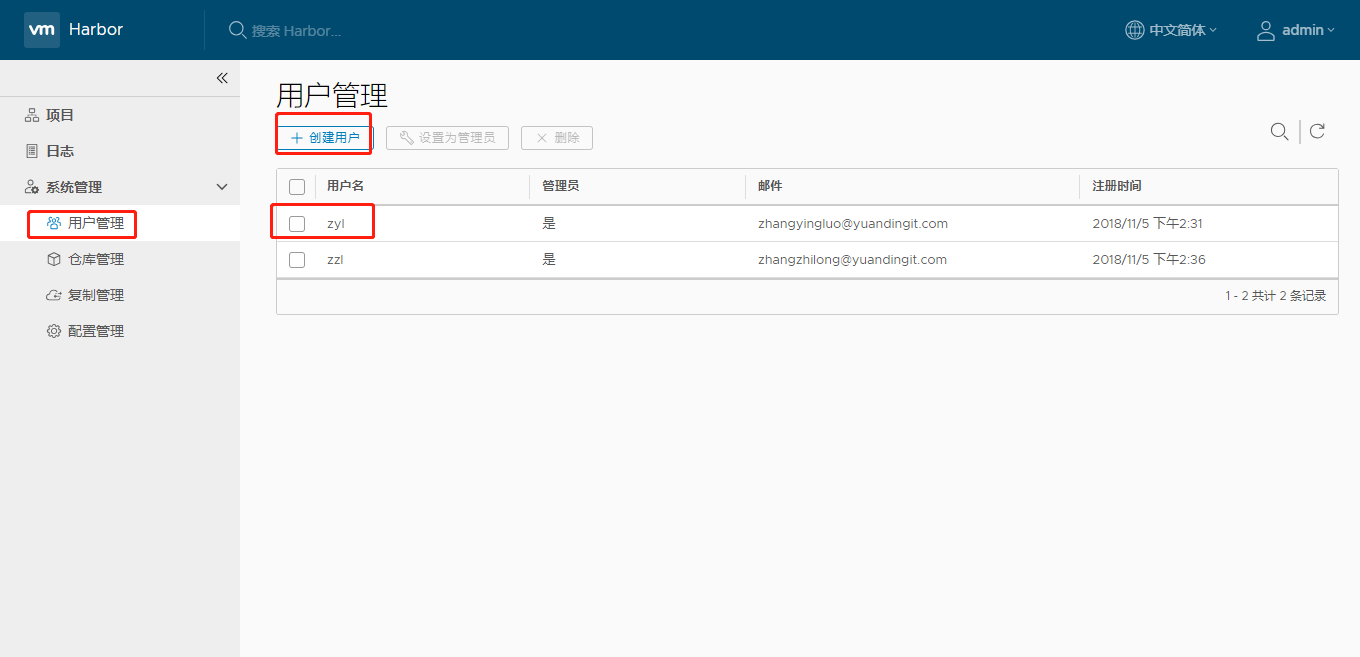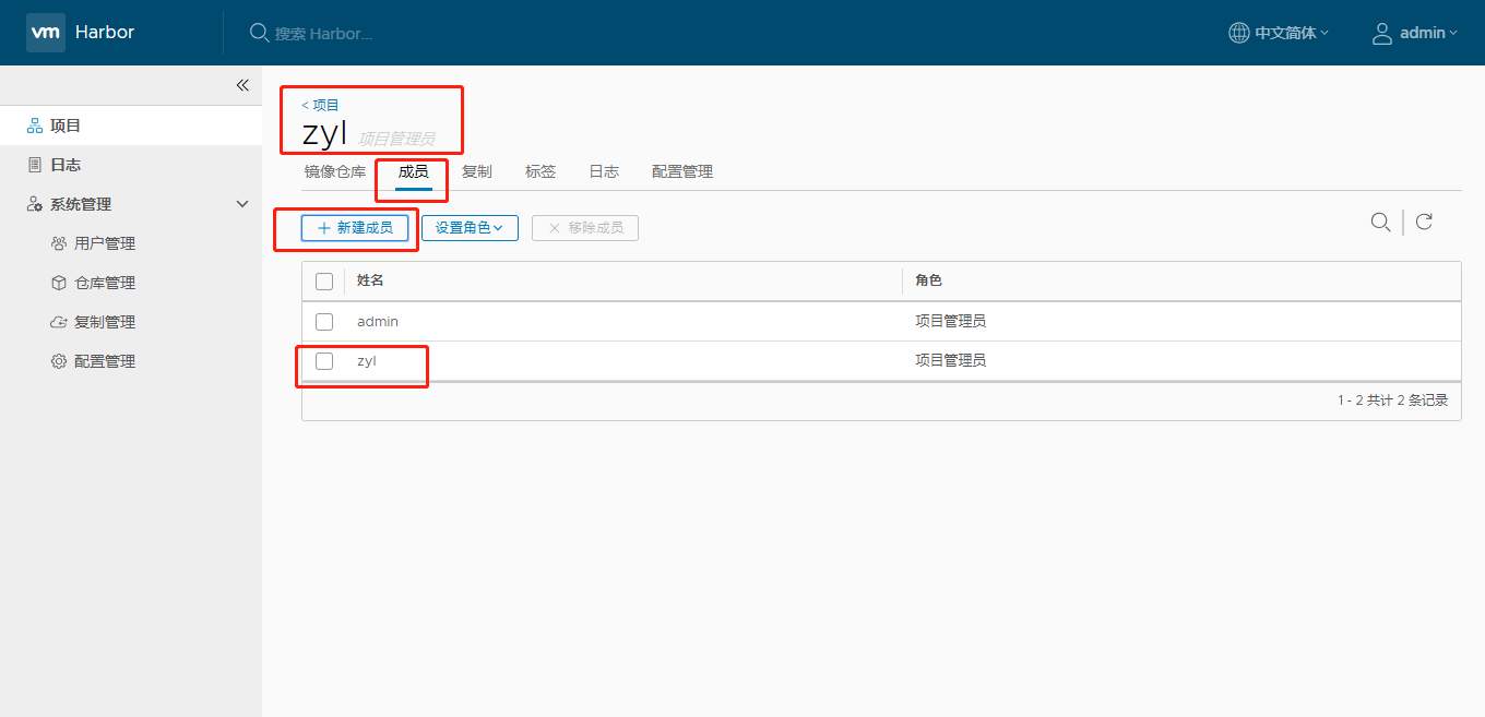 A:UI界面内建用户和项目,并在新建的项目zyl内添加刚才新建的成员用户:zyl。