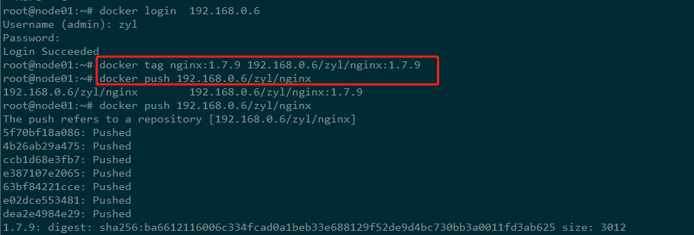 B: 添加完毕后在docker客户端用zyl用户登录镜像仓库