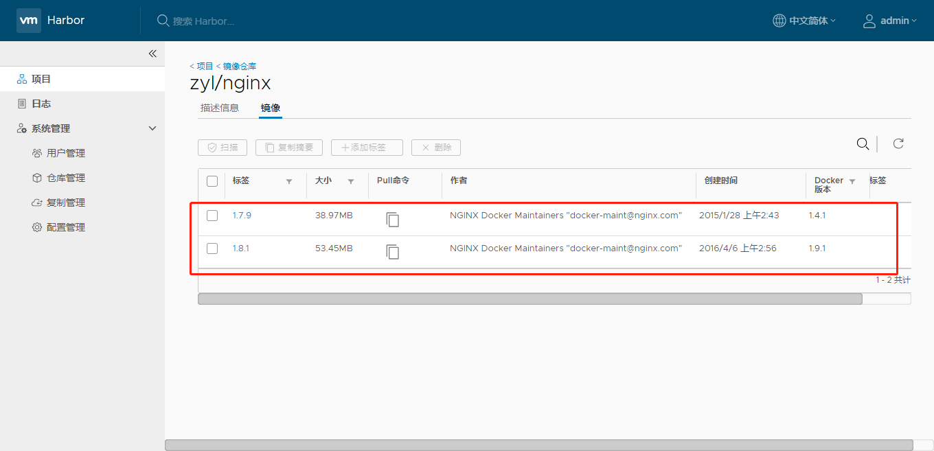 要把镜像上传到harbor仓库,必须先把已有的docker镜像tag成镜像仓库要求的格式,在push!