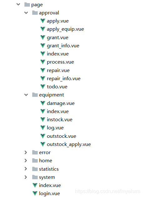 【2】 页面以页面功能为主命名(不同的模块间可以使用相同的命名页面,路由命名时加入模块名区分)