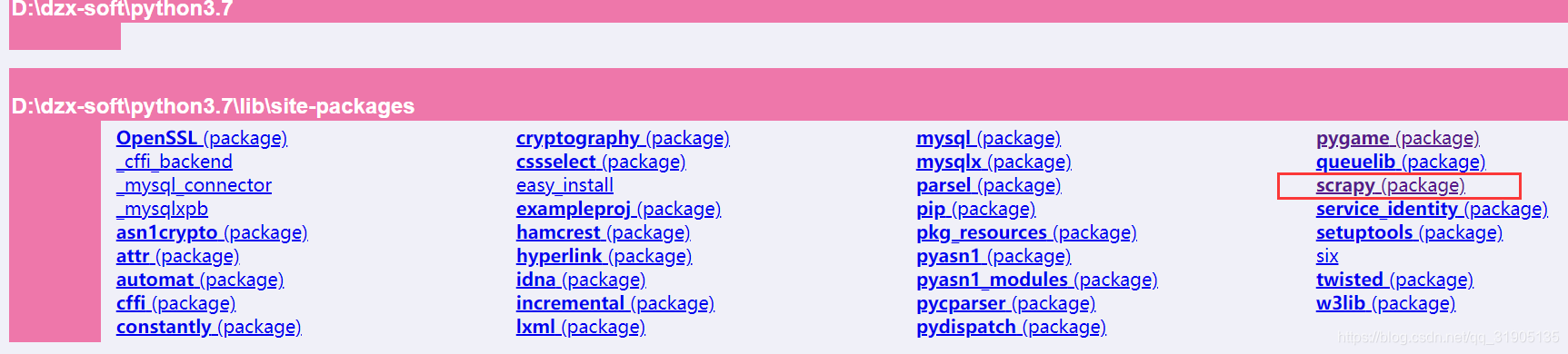 打开浏览器查看localhost:8899的页面,可以在python安装目录的lib\site-packages下看到scrapy的文档