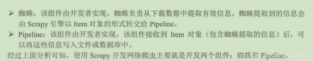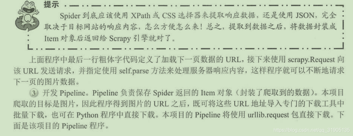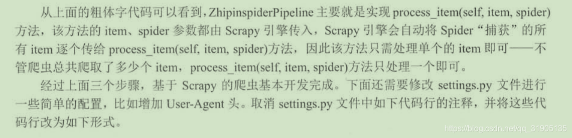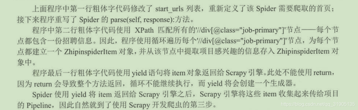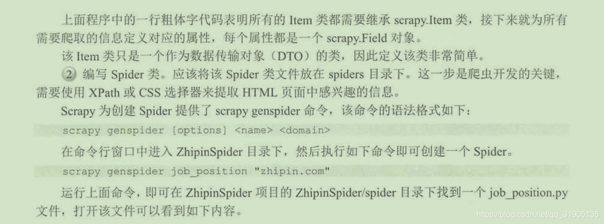 回顾一下上面的开发过程,使用scrapy开发爬虫的核心工作就是三步。