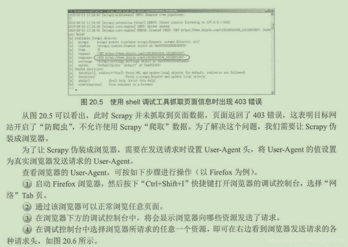 使用scrapy提供的shell调试工具来抓取该页面中的信息,使用如下命令来开启shell调试