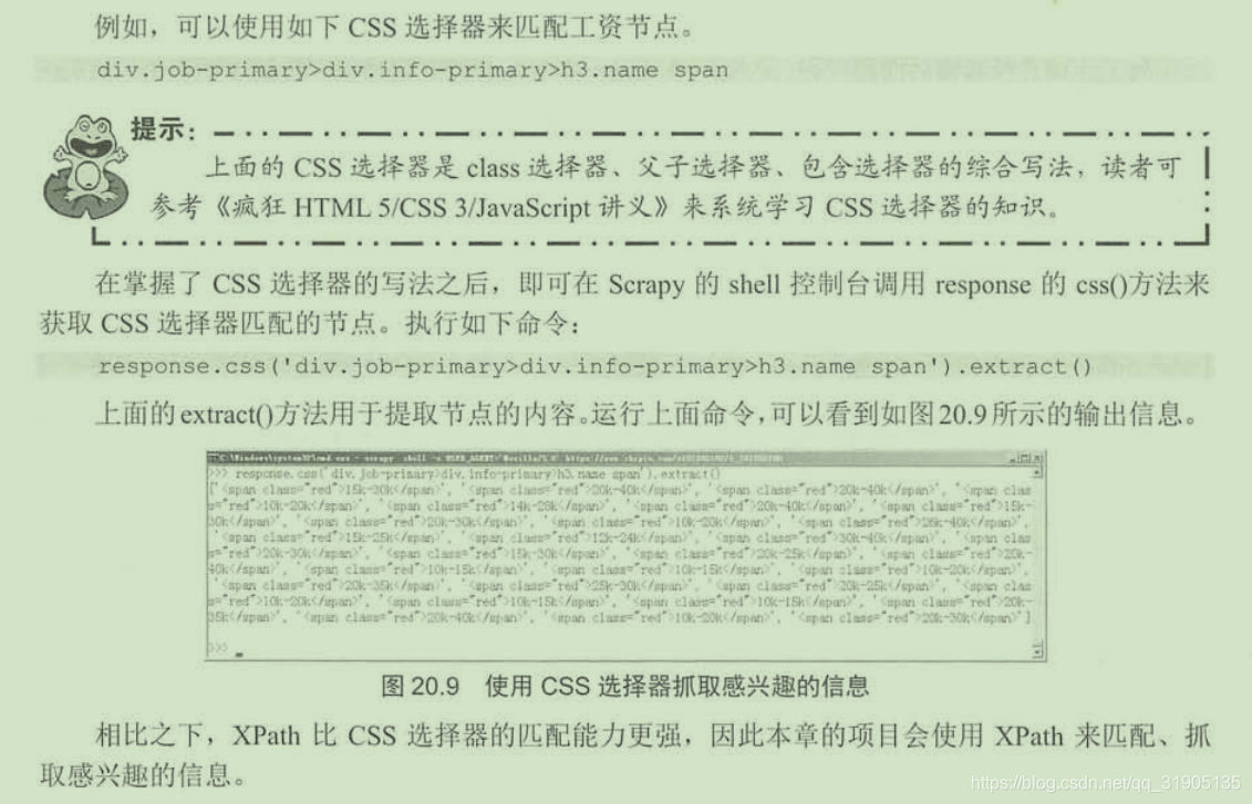 - 使用某种技术(如正则表达式,XPath等)提取页面中我们感兴趣的信息