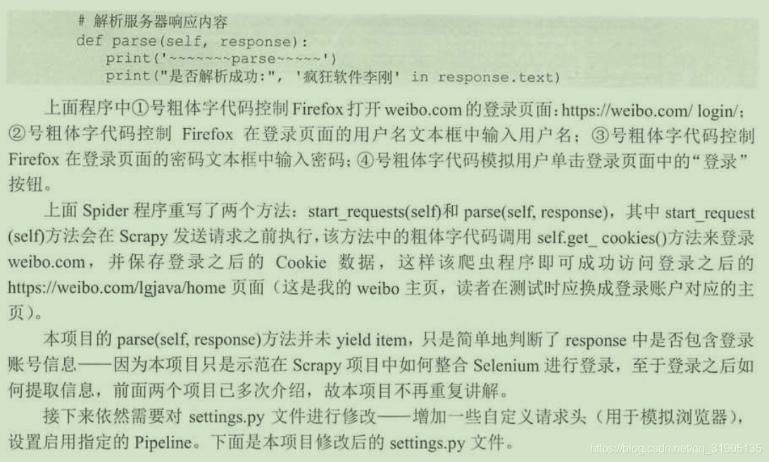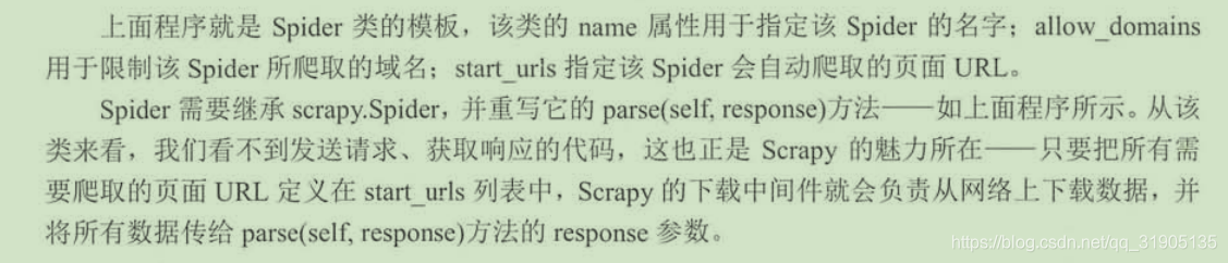 # response代表下载器从start_urls中的每个url下载得到的响应