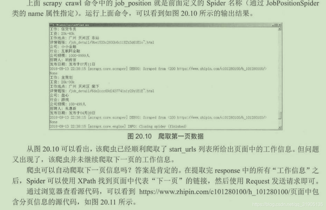 经过上面的步骤,这个基于Scrapy的spider已经开发完成,在命令行窗口中进入ZhipinSpider项目目录下,执行如下命令启动Spider。