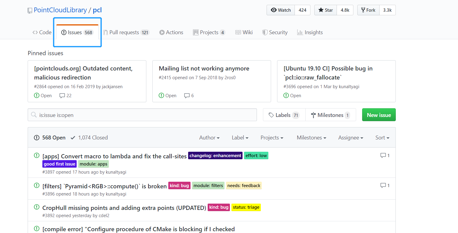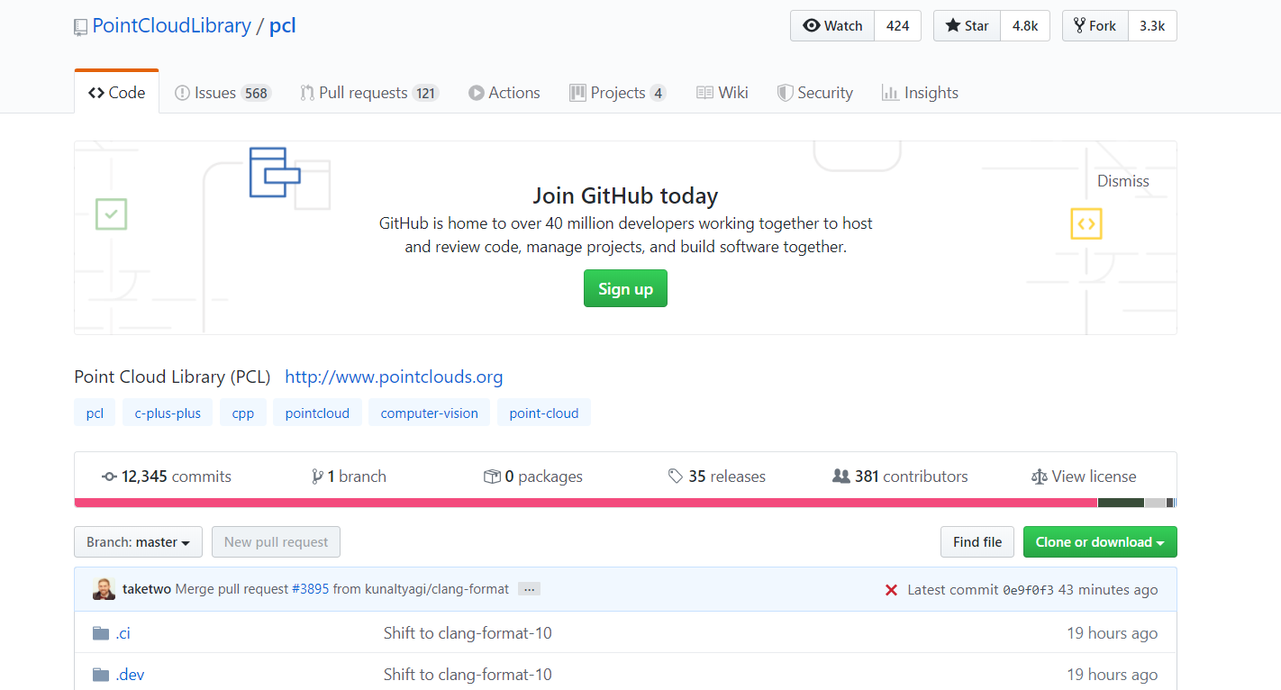 PCL开源库地址:https://github.com/PointCloudLibrary/pcl