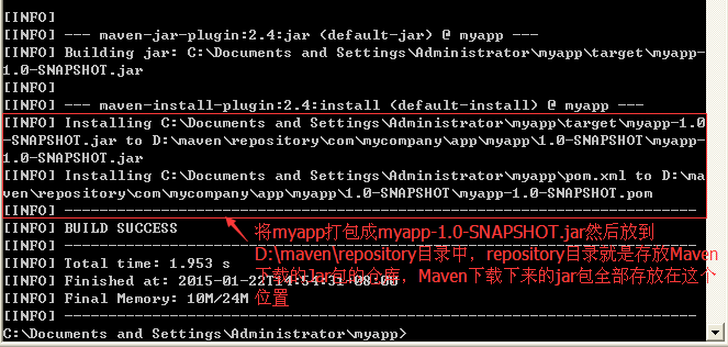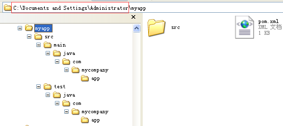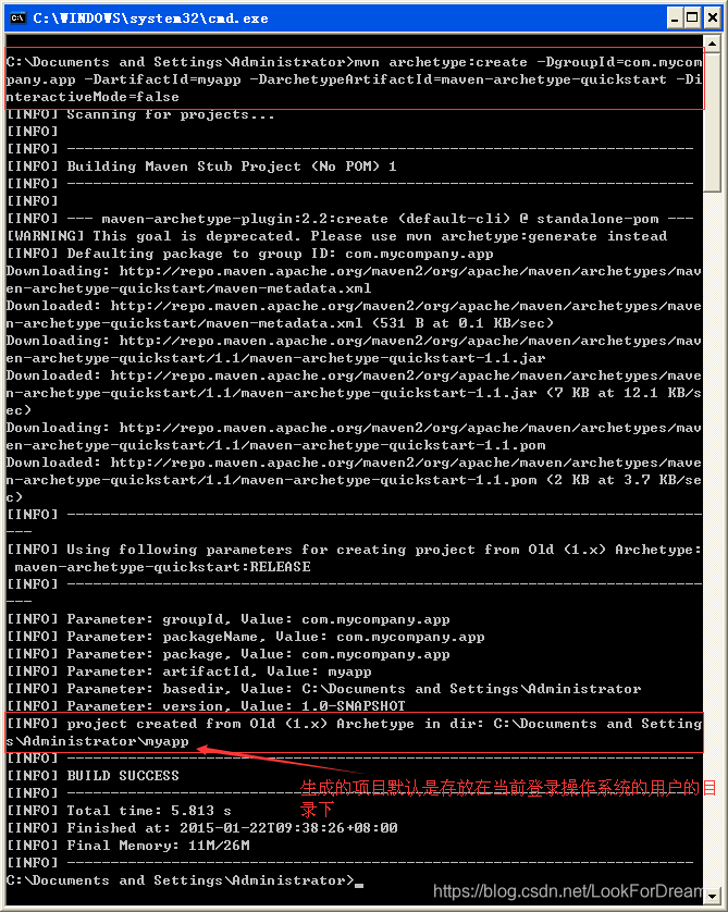 BUILD SUCCESS就表示项目构建成功,当在前用户目录下(即C:\Documents and Settings\Administrator)下构建了一个Java Project叫做myapp。