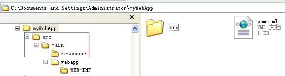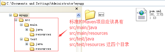 通过Maven构建的JavaProject,在项目的根目录下都会存在一个pom.xml文件,进入myapp目录,可以看到有一个pom.xml文件,这个文件是Maven的核心。如下图所示:
