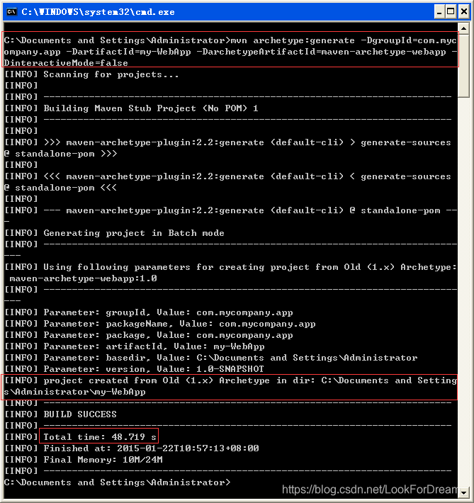 使用"mvn archetype:create"命令创建一个java项目的过程如下图所示: