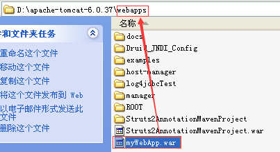将myWebApp.war放到tomcat服务器中运行,如下图所示: