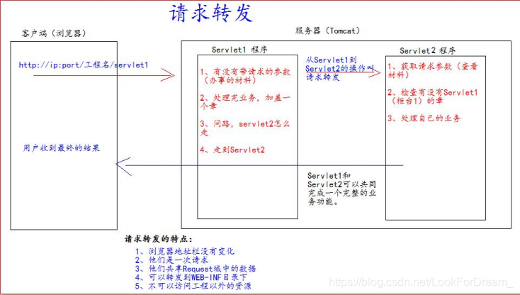 请求转发是指,服务器收到请求后,从一次资源跳转到另一个资源的操作叫请求转发。
