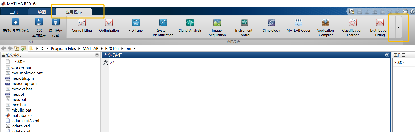 打开matlab,点击应用程序,点击小箭头来显示下拉列表