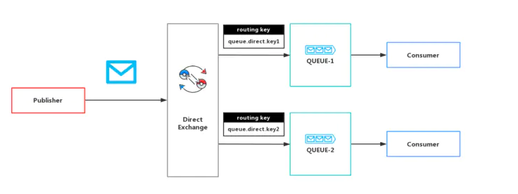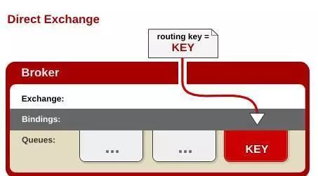 发送到该交换器的消息,会通过路由键完全匹配,匹配成功就会路由到指定队列