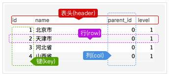 MySQL 为关系型数据库(Relational Database Management System),一个关系型数据库由一个或数个表格组成, 如图所示的一个表格: