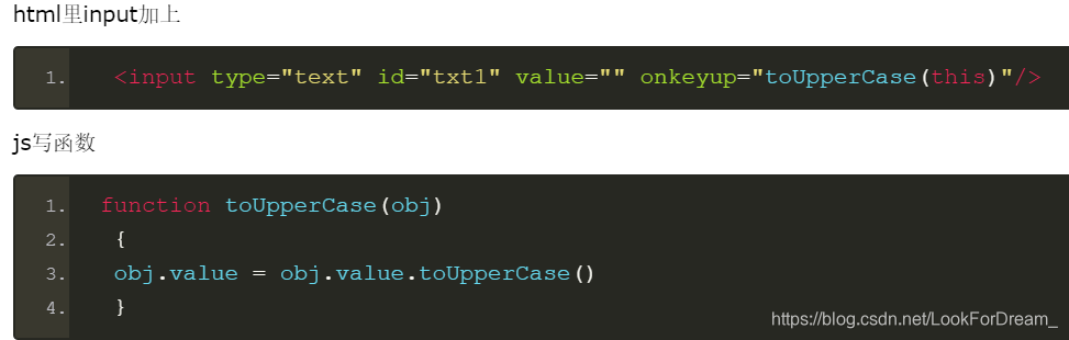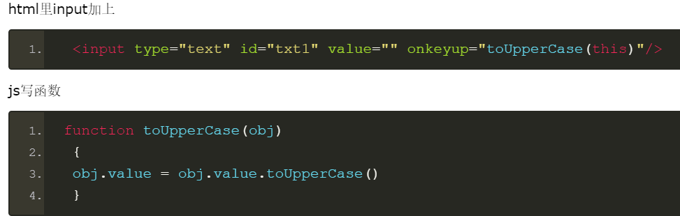 ①、<input type="text" id="txt1" value="" style="text-transform:uppercase"/>这种方式开起来转成大写了,实际上,在取值的时候还是小写。