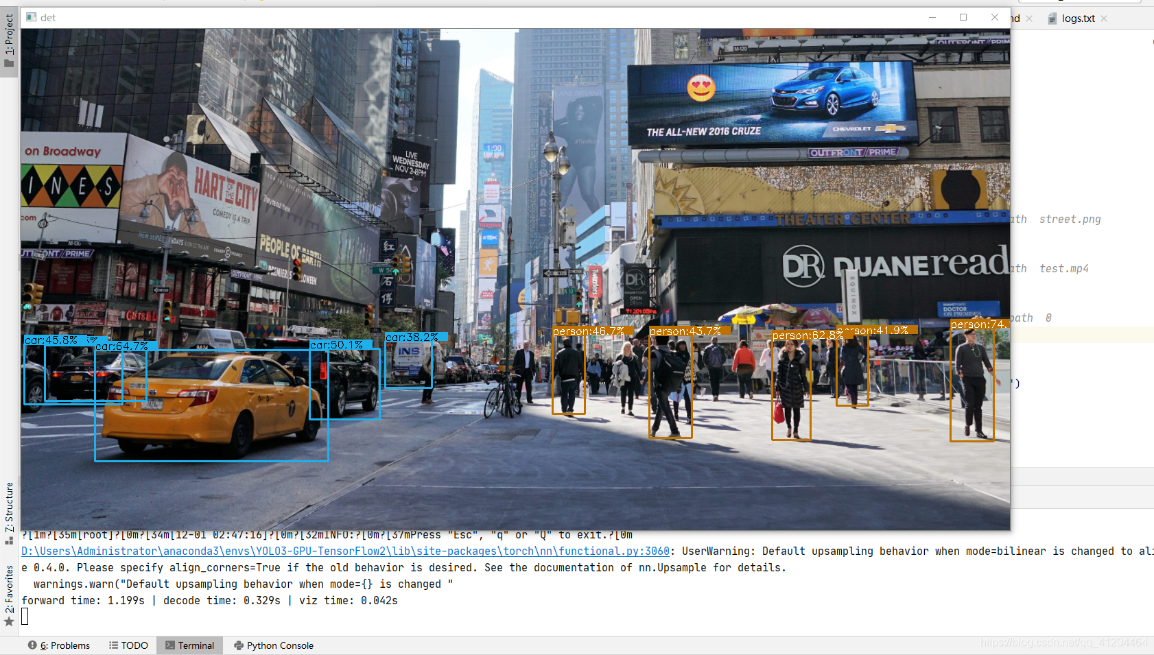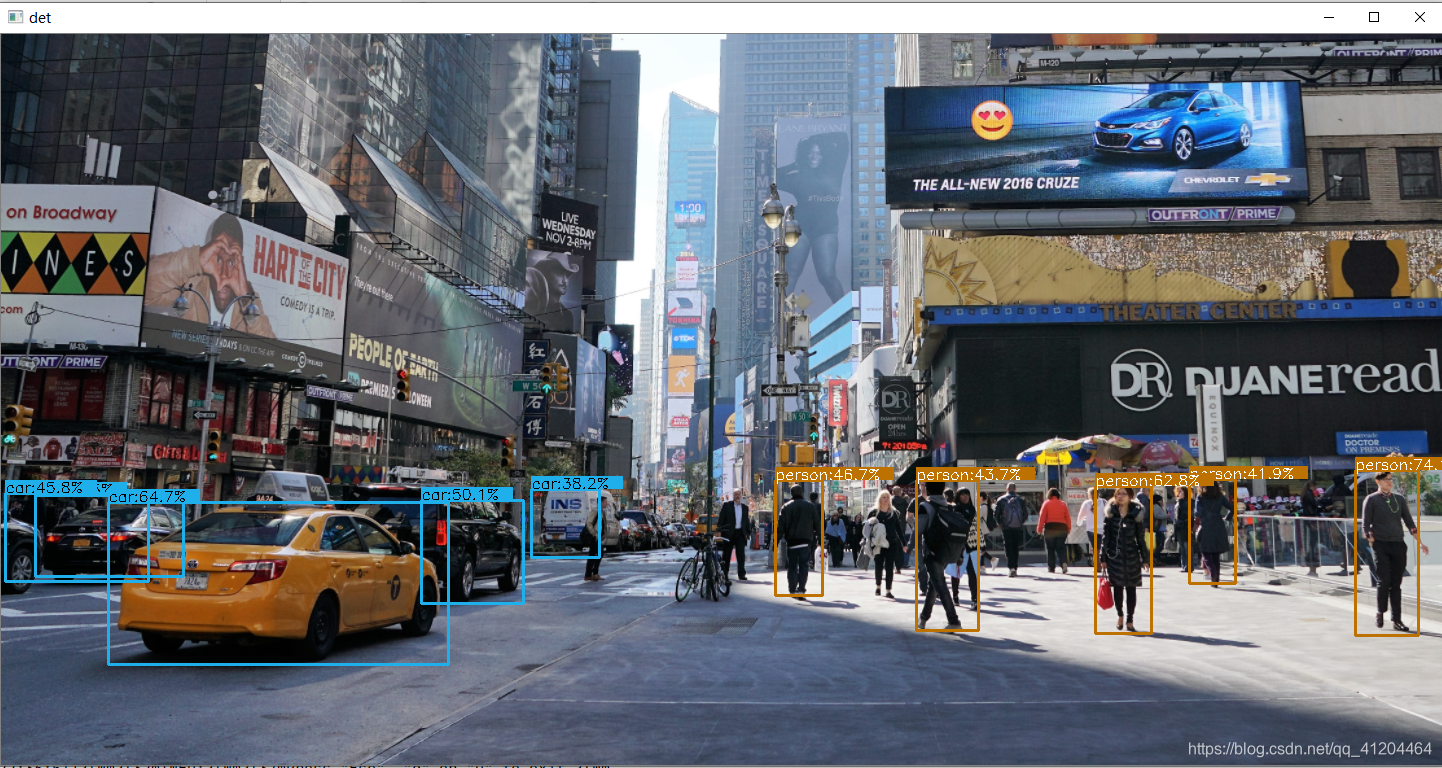 大家可以看到大部分的行人、汽车是被检测出来了,存在小部分没有被检测出来;