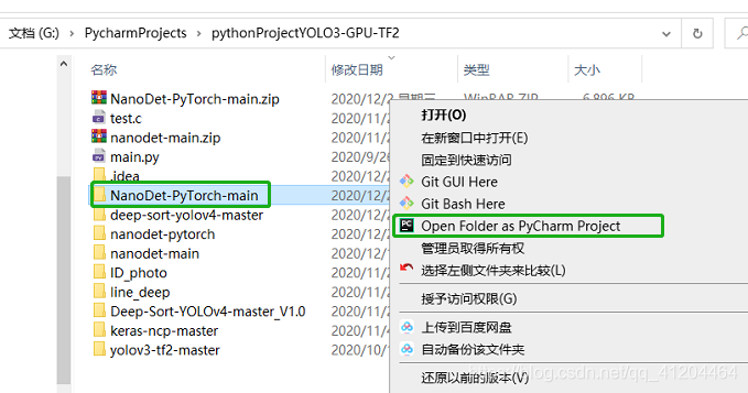 先到githug下载代码,然后解压工程,然后使用PyCharm工具打开工程;