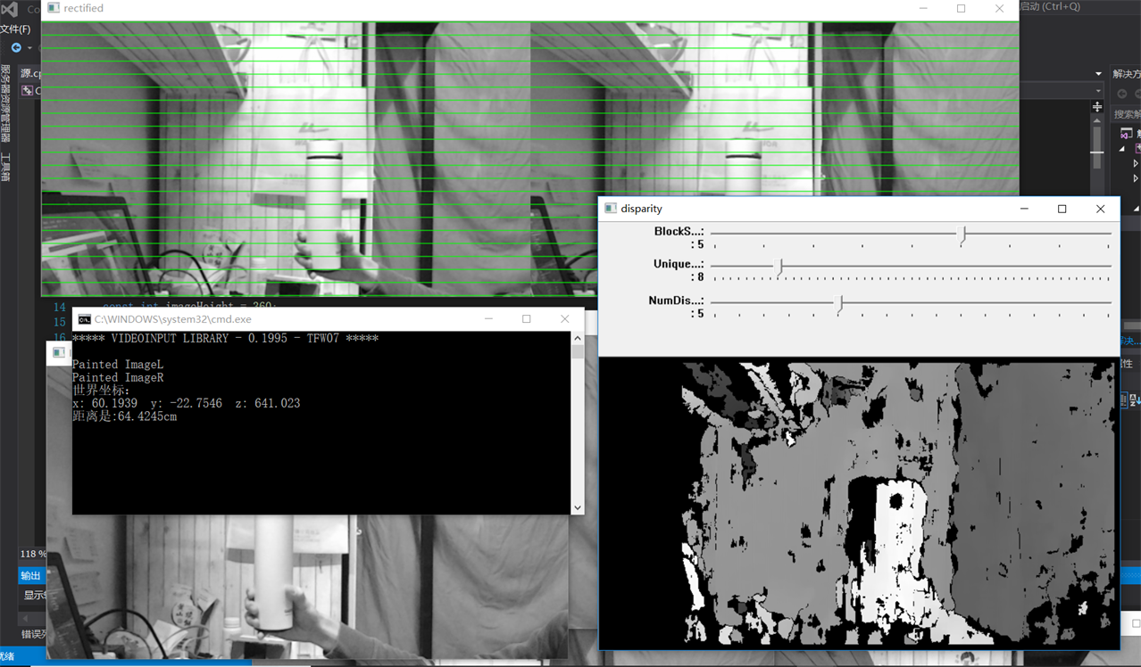 首先进行双目定标,获取双目摄像头内部的参数后,进行测距。