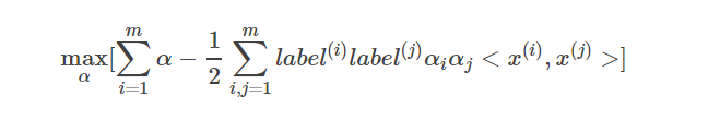 的对偶问题的极大问题,即求出α∗α∗,在通过KKT条件求出对应的参数w∗,bw∗,b,从而找到这样的间隔最大化超平面,进而利用该平面完成样本分类。目标函数如下: