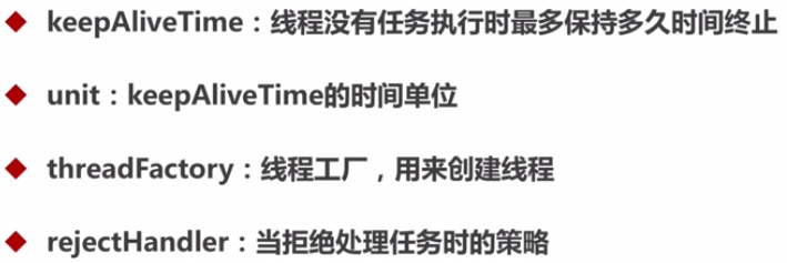 keepAliveTime,就是线程池中除了核心线程之外的其他的最长可以保留的时间,因为在线程池中,除了核心线程即使在无任务的情况下也不能被清除,其余的都是有存活时间的,意思就是非核心线程可以保留的最长的空闲时间,而util,就是计算这个时间的一个单位。