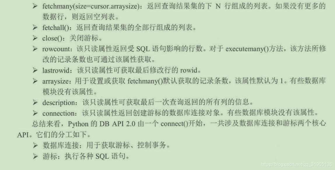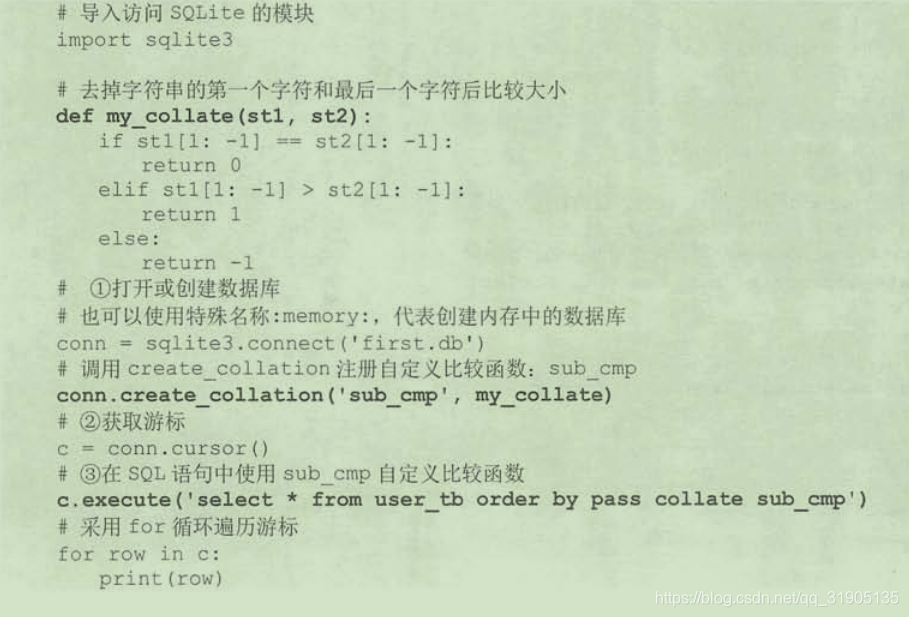 import sqlite3 # 获取数据库连接conn = sqlite3.connect('first.db')# 获取游标c = conn.cursor()# 执行查询语句c.execute('select * from user_tb where _id>?', (2,))p...