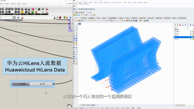 小组使用华为云HiLens Kit在蛇口市场收集视频素材,在技能市场中选取人形识别模型对素材进行识别,抓取人与档口距离数据,将人形定位点连成人流曲线,形成立体化呈现,模拟空间体验。