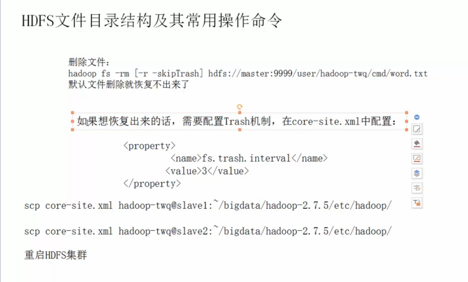 例如: 当我们在 /user/hadoop-twq/cmd 目录下删除文件后