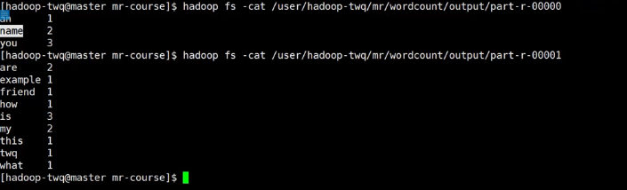 重新打包上传到服务器,运行任务,发现key包含 s的结果输出到了part0 文件,key不包含s的结果输出到part1文件。