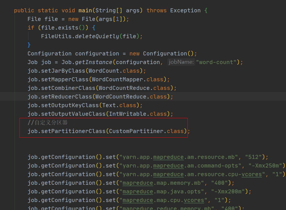 代码中的 实现: job.setCombinerClass(IntSumReduce.class);