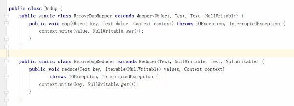 利用mapReduce的key天然去重,把map输入的value作为reduce的key,即可自动去重
