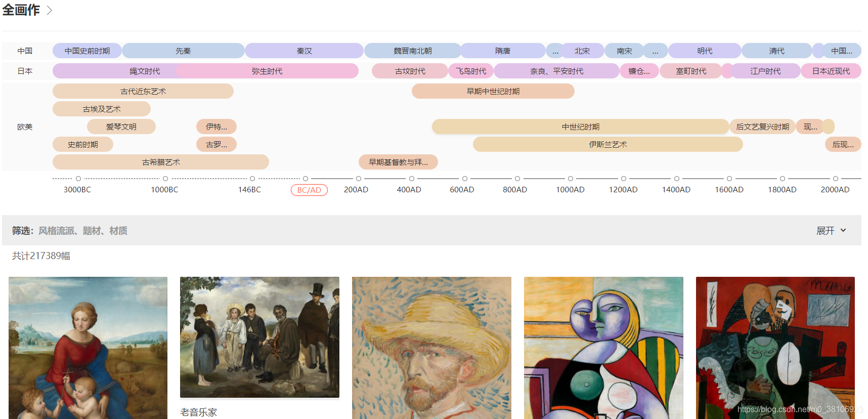 全画作:收录中外不同流派、材质和题材的绘画作品,画作榜单和分期时间轴是美术爱好者和艺术生的好助手。