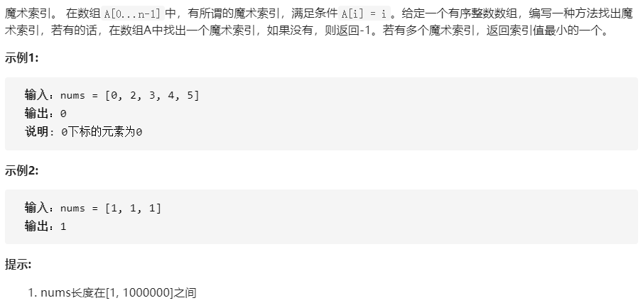 int findMagicIndex(int* nums, int numsSize){