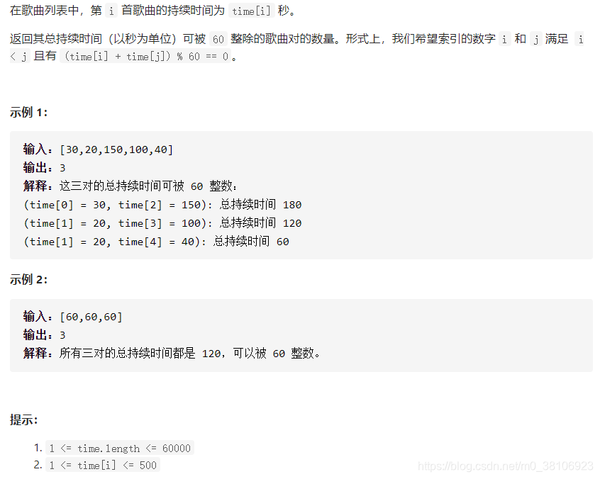 int numPairsDivisibleBy60(int* time, int timeSize){
