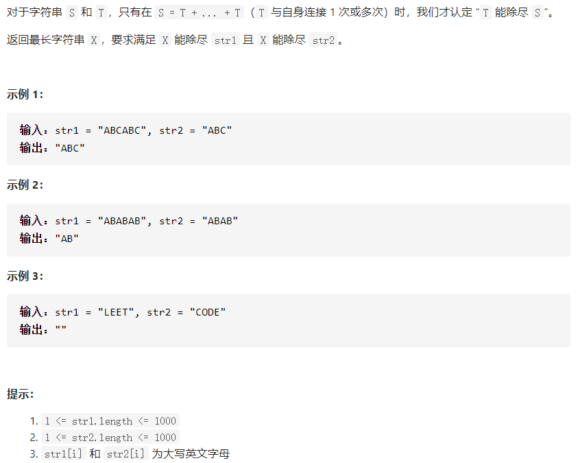 4、如果当前str1与str2一致,则最大公因子就是本身。