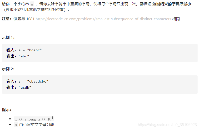 5、否则比较栈顶字母和s[i]的大小,如果stack[top]>s[i]并且recode[stack[top]-'a']>1(说明stack[top]在后边还会出现)就出栈,并且recode[s[i]-’a‘]--;