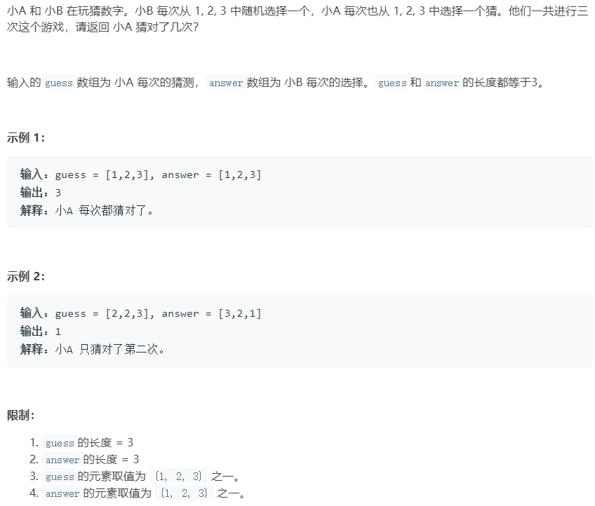 int game(int* guess, int guessSize, int* answer, int answerSize){