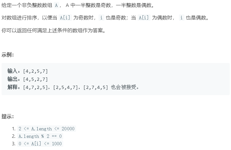 int* sortArrayByParityII(int* A, int ASize, int* returnSize){