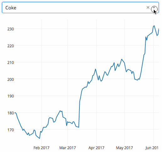 例子下面的例子展示了一个具有下拉功能的高度交互式图表。当用户在下拉菜单中选择一个值时,应用程序代码将动态地将数据从 Google Finance 导出到 panda DataFrame。