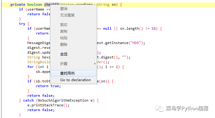 再看看在哪里调用,鼠标放在函数名上面,点击右键,选择 查找用例: