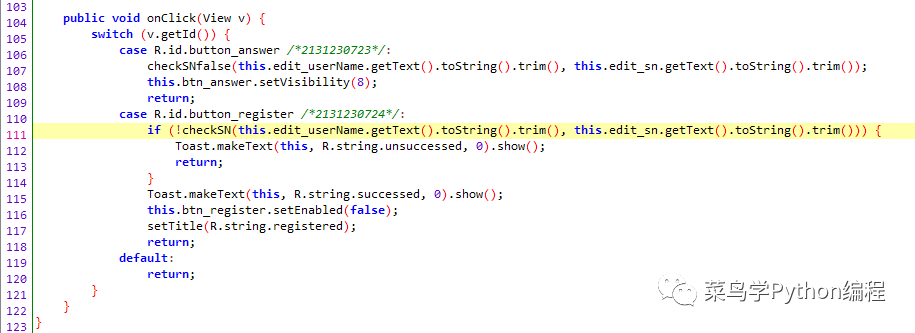 这段代码告诉我们,一个条件判断的语句执行不同的代码,关键就是这个 checkSN 函数了。
